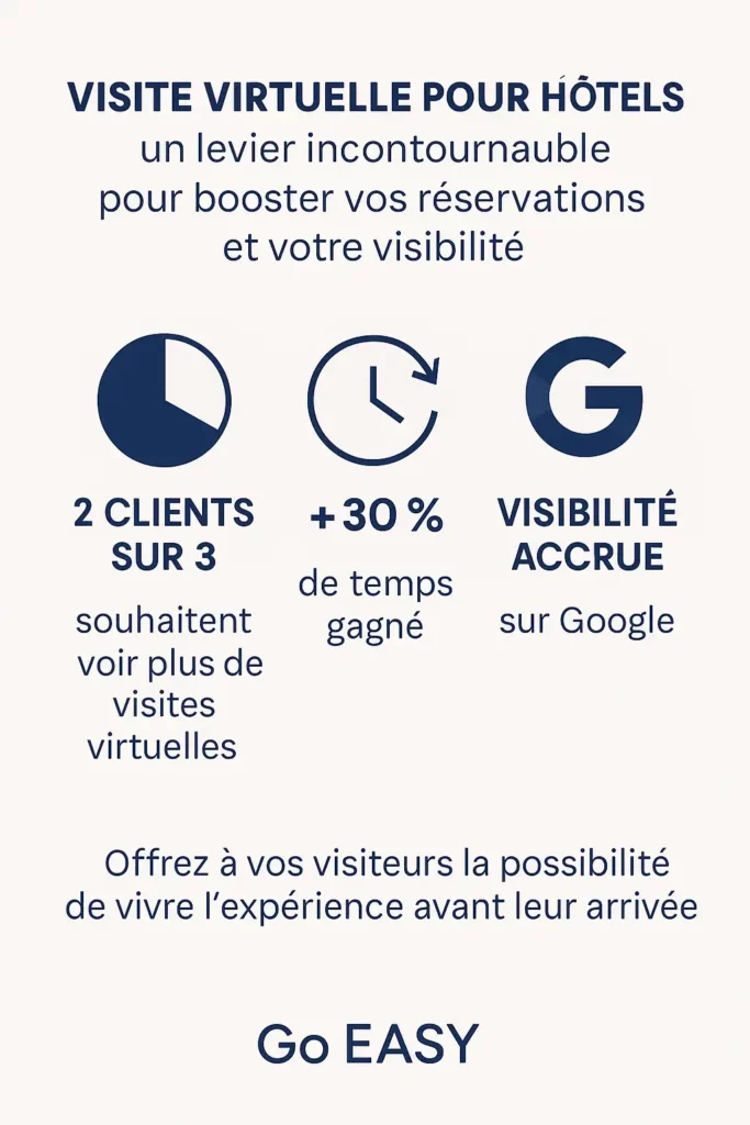 Aujourd’hui, près de 65 % des voyageurs affirment vouloir découvrir l’hôtel à travers une visite immersive avant de réserver.